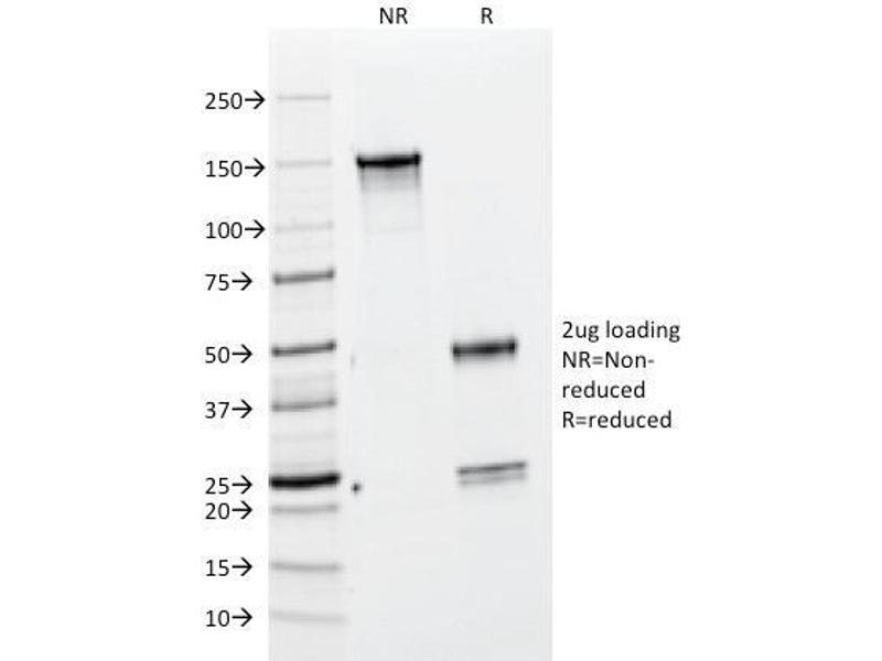 Known Application: Immunohistochemistry (Formalin-fixed) (0.5-1 μg/mL for 30 minutes at RT) (Use Ab at 1 μg/mL for 30 minute at RT)[For staining of formalin-fixed tissues, incubate sections in 4N HCl for 30 minutes at RT followed by digestion with trypsin at 1 mg/mL PBS, 10 min at 37oC (Cat. #AP-9008)]Optimal dilution for a specific application should be determined.