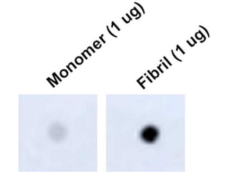 - Expressed in neurons.,Detects Multiple Bands. Antibody detects monomer under denaturing conditions but preferentially detects fibril under native conditions (dot blot).