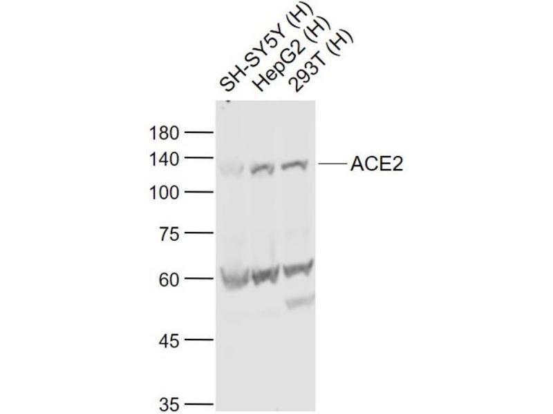 Der Kaninchen Polyklonal anti-ACE2 Antikörper wird verwendet zum Nachweis von ACE2 in Proben von Human und Maus. Er wurde validiert für WB, ELISA, ICC, IHC (p), IF (cc), IF (p) und IHC (fro).