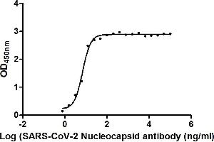 Recombinant anti-SARS-CoV-2 Nucleoprotein Mouse ScFv is expressed from 293 cells (HEK293), It is a chimeric monoclonal antibody combining the mouse variable regions with the constant domains of human IgG1. Monoclonal mouse (varialbe region)/human (kappa/IgG1 constant)chimeric antibody