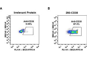 CD antigen CD38 is also known as ADP-ribosyl cyclase 1, which belongs to the ADP-ribosyl cyclase family. CD38 is expressed at high levels in pancreas, liver, kidney, brain, testis, ovary, placenta, malignant lymphoma and neuroblastoma. CD38 is a multifunctional ectoenzyme that catalyzes the synthesis and hydrolysis of cyclic ADP-ribose (cADPR) from NAD+ to ADP-ribose. These reaction products are essential for the regulation of intracellular Ca2+. The loss of CD38 function is associated with impaired immune responses, metabolic disturbances, and behavioral modifications. The CD38 protein is a marker of cell activation. It has been connected to HIV infection, leukemias, myelomas, solid tumors, type II diabetes mellitus and bone metabolism. CD38 has been used as a prognostic marker in leukemia.