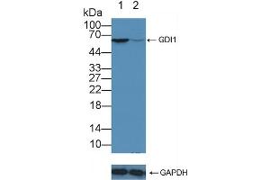 - The antibody is a rabbit polyclonal antibody raised against GDI1. It has been selected for its ability to recognize GDI1 in immunohistochemical staining and western blotting.
