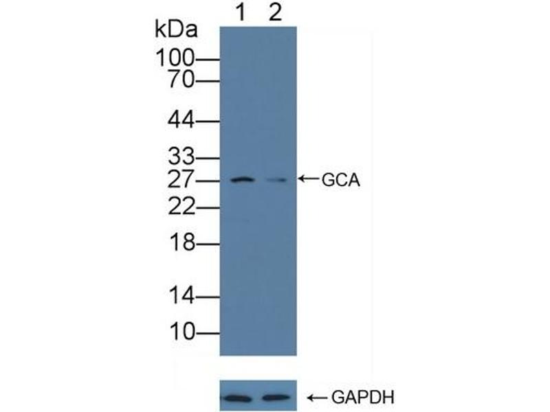 - The antibody is a rabbit polyclonal antibody raised against GCA. It has been selected for its ability to recognize GCA in immunohistochemical staining and western blotting.