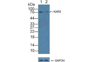 - The antibody is a rabbit polyclonal antibody raised against KARS. It has been selected for its ability to recognize KARS in immunohistochemical staining and western blotting.