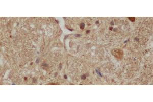 - Aβ derives from APP via proteolytic cleavage by proteases called α-, β- and γ-secretase. The α-secretase cleavage precludes the formation of Aβ, while the β- and γ-cleavages generate APP components with amyloidogenic features. Amyloid beta A4 precursor protein(APP), encoded by APP gene which locate on human chromosome 21q, is a cell surface receptor and performs physiological functions on the surface of neurons relevant to neurite growth, neuronal adhesion and axonogenesis. APP expressed in all fetal tissues and is pronounced in brain, kidney, heart and spleen, but weak in liver. Defects in APP are the cause of Alzheimer disease type 1 (AD1). This antibody can recogniaze the N-terminus of human APP: Soluble APP-alpha and Soluble APP-beta.