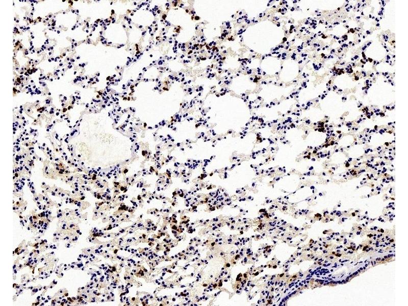 Ly6G is a GPI-anchored protein, that is also known as the myeloid differentiation antigen Gr1. The antigen is transiently expressed on monocytes in the bone marrow. The level of antigen expression in the bone marrow directly correlates with granulocyte differentiation and maturation. Ly6G is expressed predominantly on neutrophils, also in a subset of eosinophils, differentiating pre-monocytes, and plasmacytoid dendritic cells.