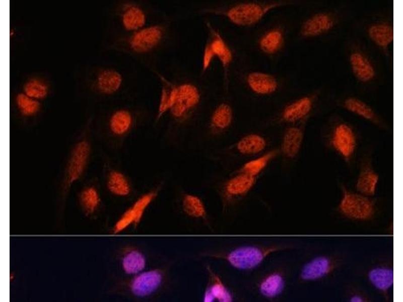 Der Kaninchen Polyklonal anti-OTUB1 Antikörper wird verwendet zum Nachweis von OTUB1 in Proben von Human, Maus und Ratte. Er wurde validiert für IF.