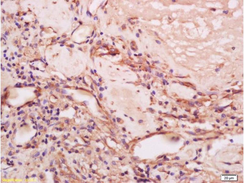 Background: Ulex Europaeus is a European gorse shrub with fragrant golden-yellow flowers. Ulex Europaeus-I Lectin is a 46 kDa glycoprotein known to interact with -L fucosyl residues in oligosaccharides present on the membranes of human blood group O erythrocytes, human endothelial cells and a variety of human and animal epithelial cells. This antibody reacts with Ulex Europaeus Lectin 1 bound to human endothelial cells of normal and neoplastic blood and lymphatic vesicles. It also reacts with human epithelia such as in the colon, bronchus, epidermis, sweat gland ducts and hair follicles. It also reacts with for Ulex Europaeus Lectin 1 bound to vascular endothelium and squamous epithelium of human tonsil. While erythrocytes may be stained, no other tonsilar elements are reactive with the antibody. This antibody may be useful in the detection of vascular tumors, the investigation of vascular invasion by tumor cells, for determination of Ulex Europaeus Lectin 1 binding to normal, embryonal, dysplastic and neoplastic epithelial and the study of storage diseases such as fucosidosis.
