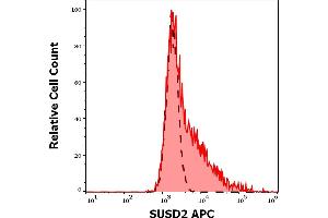 Sushi domain containing 2,SUSD2 (sushi domain containing protein 2) is a type I transmembrane protein, that serves as an important marker of bone marrow-derived mesenchymal stem-like cells (bone marrow stromal cells). These pluripotent cells are important for techniques of autologous cell therapy, and can be collected from e.g. endometrium, or palatine tonsil. SUSD2 seems to be a tumor supresor, and is down-regulated in colon cancer tissues, whereas it is highly expressed e.g. in breast cancer.