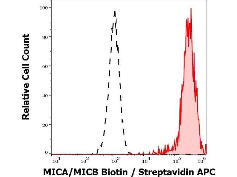 The mouse monoclonal antibody 6D4 recognizes a common extracellular epitope on MICA and MICB glycoproteins, transmembrane ligands of CD314 (NKG2D), and is able to block CD314-mediated activation of NK cells and cytotoxic T cells.