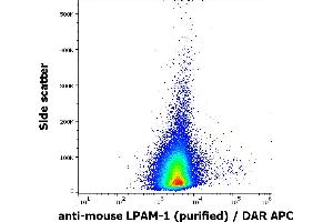 Integrin alpha 4 / beta 7 (CD49d / Ly69) , also known as LPAM-1 (Llmphocyte Peyer´s patch adhesion molecule 1), is a heterodimeric (150 kDa / 130 kDa) integrin complex which mediates lymphocyte homing to Peyer´s patch high endothelial venules and to the intestinal lamina propria. It is expressed primarily on mucosal lymphocytes, but is also present on NK cells and eosinophils. Ligands of LPAM-1 are MAdCAM-1, VCAM-1, and fibronectin, but the alpha 4 subunit (CD49d) can mediate also homotypic adhesion.,Integrin alpha 4 beta 7, CD49d / Ly69