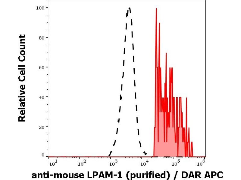 The rat monoclonal antibody DATK32 recognizes an extracellular epitope of integrin alpha 4 (CD49d) and integrin beta7 (Ly69) components of mouse LPAM-1 complex, which is expressed on the majority of peripheral lymphocytes, as well as on subsets of thymocytes and bone marrow cells.
