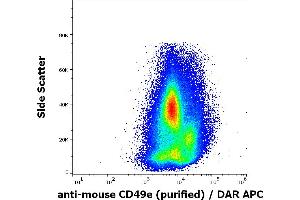 The rat monoclonal antibody 5H10-27 (MFR5) recognizes an extracellular epitope of murine CD49e, a 135 kDa protein serving as VLA-5 alpha chain, expressed on thymocytes, activated T cells, splenic B cells, and mast cells.