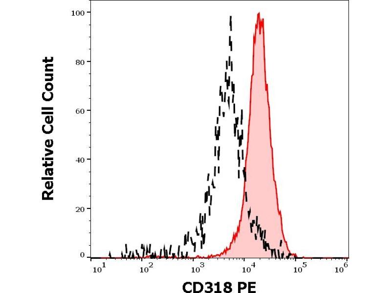 The mouse monoclonal antibody CUB1 recognizes an extracellular epitope of CD318, a type I transmembrane protein involved in early hematopoiesis.