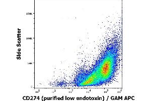 The mouse monoclonal antibody 29E.2A3 recognizes an extracellular epitope of CD274 / PD-L1 (also known as B7-H1), a 40 kDa type I transmembrane protein expressed by dendritic cells, activated T cells, activated monocytes, and in various tissues, above all in heart and skeletal muscle, placenta and lung, and in many cancer cells, including T cell lymphomas, melanomas, and glioblastomas.