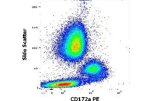 The mouse monoclonal antibody 15-414 recognizes en extracellular epitope of CD172a (SIRP alpha), an approximately 90 kDa transmembrane glycoprotein expressed on cells of myeloid origin and neurons.