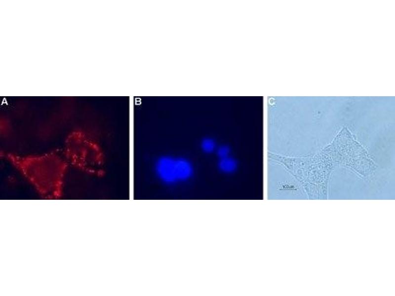Glucagon-like peptide 1 receptor, GLP-1 receptor,Glucagon-like peptide 1 (GLP-1) is a hormone secreted by the intestine following a meal1. This hormone is known to enhance the secretion of insulin, important glucose blood level regulation2,3. In pancreatic β-cells, other than stimulating insulin secretion, GLP-1 action is also important for β-cell mass expansion2.GLP-1 exerts its biological functions through Glucagon-like peptide 1 receptor (GLP-1 receptor), a member of the G-protein coupled receptor superfamily. Like all members, this receptor spans the membrane seven times. GLP-1 receptor couples with Gs, thereby stimulating adenylate cyclase, consequently leading to an increase in cAMP2.The receptor is expressed in various tissues, namely the pancreas, adipose tissue, muscle, heart, gastrointestinal tract and liver. GLP-1 receptor is also found in the central nervous system where it provides a neuroprotective effect4.The glucagon-like peptide 1 system may serve as a therapeutic treatment in diabetes mellitus, in order to maintain β-cell mass expansion2. In addition, the receptor may serve as a therapy target in various neurodegenerative diseases like Alzheimer's and Parkinson's disease4.