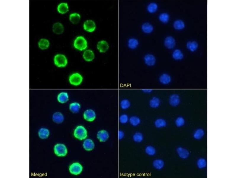 - This antibody is specific for murine CD20, which is a cell surface 33-37 (depending on the degree of phosphorylation) kDa non-glycosylated surface phosphoprotein expressed on mature and most malignant B cells, but not stem cells or plasma cells. Low number of the CD20 has been also detected on a subpopulation of T lymphocytes and it can be expressed on follicular dendritic cells. Its expression on B cells is synchronous with the expression of surface IgM. CD20 regulates transmembrane calcium conductance (probably functioning as a component of store-operated calcium channel), cell cycle progression and B-cell proliferation. CD20 serves as a useful target for antibody-mediated therapeutic depletion of B cells, as it is expressed at high levels on most B-cell malignancies, but does not become internalized or shed from the plasma membrane following mAb treatment.