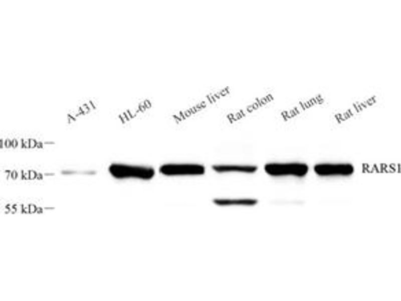 Dieser Anti-RARS Antikörper ist ein Kaninchen Polyklonal Antikörper zur Detektion von RARS in WB, IHC und IF. Geeignet für Human, Maus und Ratte.