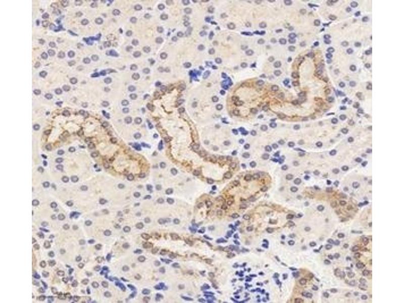 The ATP-binding cassette transporter 6 (ABCC6) gene, also named as MRP6, is a cellular transmembrane protein transporter and belongs to ATP-binding cassette (ABC) family. ABCC6 is an ATP-dependent transporter contains two ATP-binding domains. It is mainly found in the liver, the proximal tubules of the kidneys and the intestines. ABCC6 is involved in a pathway of extracellular nucleotide metabolism and the regulation of tissue calcification. Mutations of ABCC6 leads to pseudoxanthoma elasticum (PXE) which is a rare autosomal recessive disorder. Mutations of ABCC6 can also lead generalized arterial calcification of infancy-2 (GACI2). 27848-1-AP detects two isoforms of ABCC6 protein around 165 kDa and 96 kDa in SDS-PAGE.