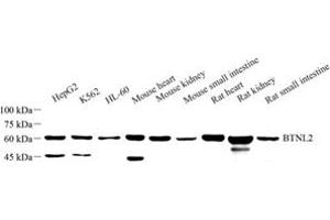 BTNL2 (butyrophilin-like protein 2), also known as BTL-II, is a 455 amino acid single-pass type II membrane protein that acts as a negative regulator of T cell proliferation. BTNL2 exists as at least six alternatively spliced isoforms, which are encoded by a gene located on human chromosome 6. Expression of BTNL2 isoform 3 is associated with susceptibility to sarcoidosis type 2 (SS2), an immune disorder that causes chronic inflammatory granulomatous lesions.