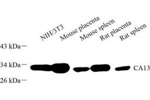 CA13 is a cytosolic proteinmay that may play a role in embryogenesis and perturbation of its function by genetic modification could potentially lead to developmental abnormalities.Carbonic anhydrases (CAs) are zinc-containing metalloenzymes that catalyze reversible hydration of carbon dioxide. The mammalian α-CA gene family has been reported to include at least eleven enzymatically active isoforms with different structural and catalytic properties.