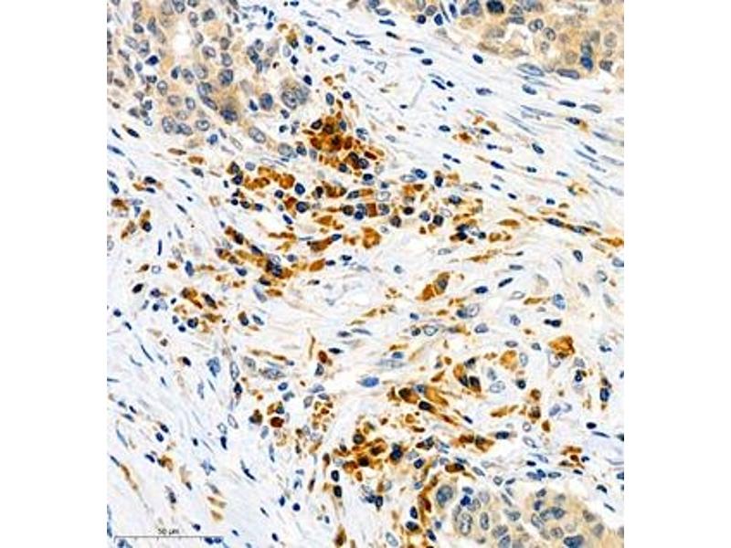 Der Kaninchen Polyklonal anti-M-CSF/CSF1 Antikörper wird verwendet zum Nachweis von M-CSF/CSF1 in Proben von Human, Maus und Ratte. Er wurde validiert für IHC und IF.