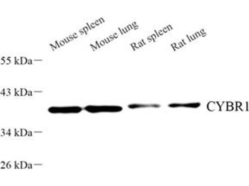 Der Kaninchen Polyklonal anti-Cytochrome B Reductase 1 Antikörper wird verwendet zum Nachweis von Cytochrome B Reductase 1 in Proben von Maus und Ratte. Er wurde validiert für WB.