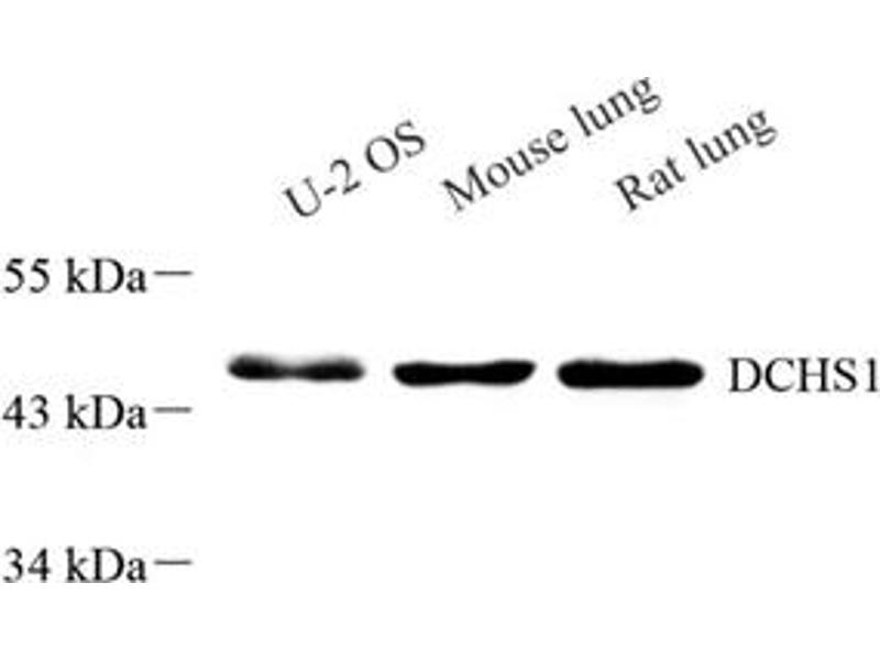 Der Kaninchen Polyklonal anti-DCHS1 Antikörper (ABIN7073689) detektiert spezifisch DCHS1 in WB.