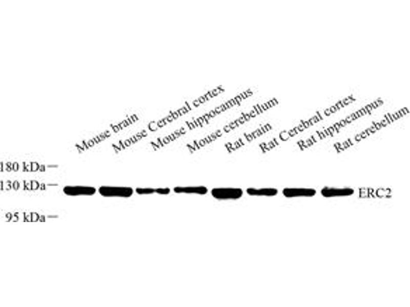 Der Kaninchen Polyklonal anti-ERC2 Antikörper wird verwendet zum Nachweis von ERC2 in Proben von Maus und Ratte. Er wurde validiert für WB, IHC und IF.