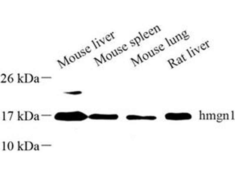 HMGN1 (high-mobility group nucleosome binding protein 1) is a member of the HMG super family of nonhistone chromatin-binding proteins, which which regulate chromatin structure and gene transcription. It binds to the inner side of the nucleosomal DNA thus altering the interaction between the DNA and the histone octamer. It may participate in the process which maintains transcribable genes in an unique chromatin conformation, and inhibit the phosphorylation of nucleosomal histones H3 and H2A by RPS6KA5/MSK1 and RPS6KA3/RSK2 expressed abundantly.