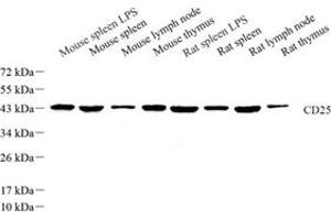 IL-2Rα(Activated T cells IL-2Rα Chain 55), also kown as membrane interleukin-2 receptor (mIL-2R) or CD25, is a protein encoded by IL2RA gene in Human. This protein is 55 kDa which is the high affinity composition of IL-2R. Few IL-2α chains will express in inactive T cells, while the expression will remarkably increase followed by IL-2 accumulation, when T cell surface receptor (TCR) is active. IL-2αchains will become soluble interleukin-2 receptor (sIL-2R) when they are detached from cell membrane into serum, and the molecular weight of sIL-2R is 45 kDa. The concentration of sIL-2R in serum can be used for a mark to measure T cells activation and IL-2Rα chains expression.