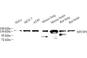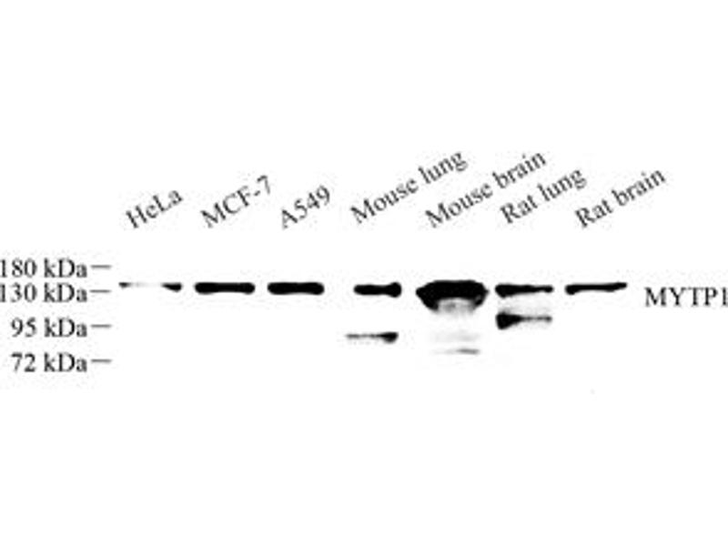 Myosin phosphatase target subunit 1, which is also called the myosin-binding subunit of myosin phosphatase, is one of the subunits of myosin phosphatase. Myosin phosphatase regulates the interaction of actin and myosin downstream of the guanosine triphosphatase Rho. The guanosine triphosphate (GTP)-bound, active form of RhoA (GTP.RhoA) specifically interacted with the myosin-binding subunit (MBS) of myosin phosphatase, which regulates the extent of phosphorylation of MLC. Rho-associated kinase (Rho-kinase), which is activated by GTP. RhoA, phosphorylated MBS and consequently inactivated myosin phosphatase. Overexpression of RhoA or activated RhoA in NIH 3T3 cells increased phosphorylation of MBS and MLC. Thus, Rho appears to inhibit myosin phosphatase through the action of Rho-kinase.