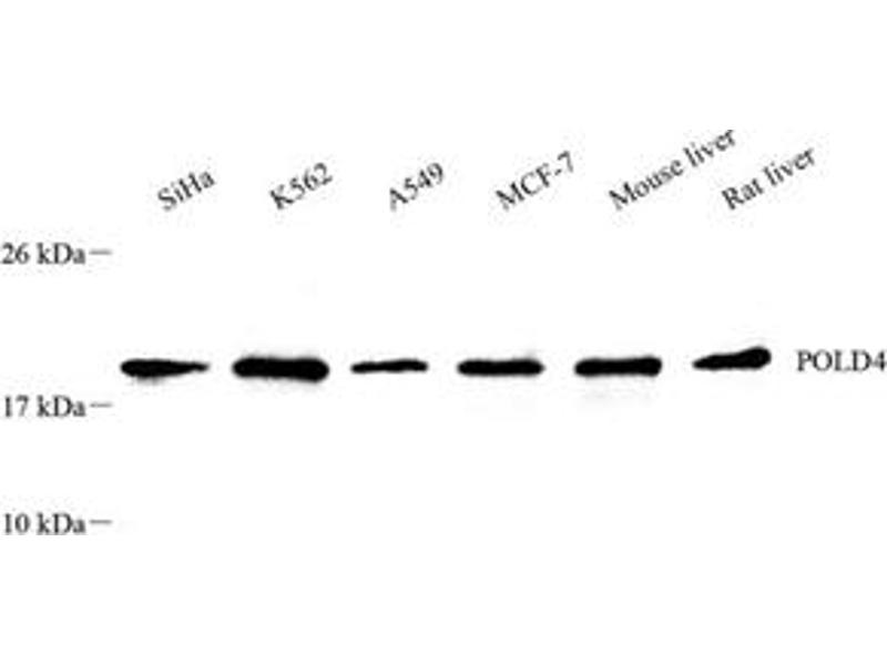 Der Kaninchen Polyklonal anti-POLD4 Antikörper wird verwendet zum Nachweis von POLD4 in Proben von Human, Maus und Ratte. Er wurde validiert für WB.