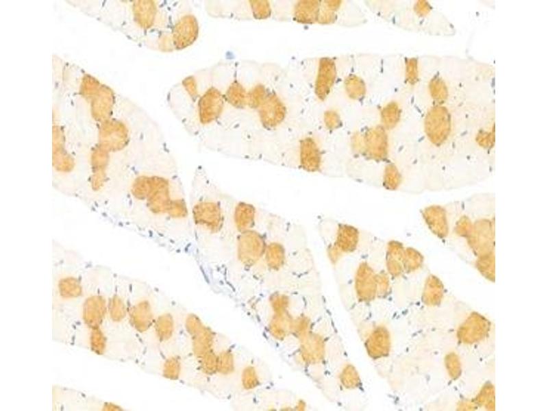 Der Kaninchen Polyklonal anti-Slow Skeletal Myosin Heavy Chain Antikörper wird verwendet zum Nachweis von Slow Skeletal Myosin Heavy Chain in Proben von Maus, Ratte und Human. Er wurde validiert für IF, IHC und WB.