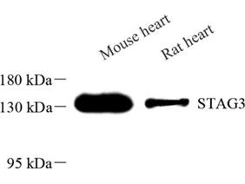 Der Kaninchen Polyklonal anti-STAG3 Antikörper (ABIN7075744) detektiert spezifisch STAG3 in WB.