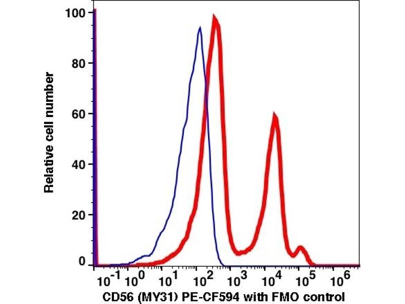 Clone MY31, a mouse antibody, binds to the human 140- kDa glycoprotein, an isoform of neural cell adhesion molecule (NCAM) known as CD56. CD56 and CD16 expressing lymphocytes are primarily considered as human NK cells and NK-T cells. A subset of CD56+ NK cells play a unique functional role in the innate immune response as the primary source of NK cell-derived immunoregulatory cytokines, regulated in part by differential monokine production. CD56 is also expressed in normal and neoplastic human neuroendocrine tissues, certain large granular lymphocyte (LGL) leukemias, small-cell lung carcinomas, neuronal derived tumors, myelomas, and myeloid leukemias. Increased CD56 + lymphocyte subsets in peripheral blood has a significant predictive or prognostic factor in metastatic breast cancer.