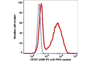 The clone 4G8, a mouse monoclonal antibody selectively recognizes a 60-90 kDa surface type 1 transmembrane glycoprotein antigen known as CD127 or IL-7 receptor α chain (IL-7Rα). CD127 forms a heterodimer with the common γ chain of the receptors of several cytokines such as IL-2, IL-4, IL-9, IL-13, IL-15, and IL-21. It is widely expressed on different subsets of B cells, peripheral T cells and bone marrow stromal cells. CD127 plays important role in the generation of memory and effector T cells as well as functional B cells.