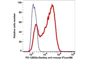 The clone 6D5, a mouse monoclonal antibody selectively binds with a 50-55 kD cell surface protein commonly known as Programmed cell death 1 (PD-1) or CD279, a member of the immunoglobulin superfamily. PD-1 expression is mostly observed in activated T cells and B cells, and also in dendritic cells. PD-1 signals via binding its two ligands, PD-L1 and PD-L2. Upon ligand binding, PD-1 signaling inhibits T-cell activation, leading to reduced proliferation, cytokine production, and T cell death. Blocking of PD-1 by its antibody restores T cells immunity against tumor and infectious agents. PD-1-blockade based immunotherapy is, therefore, highly clinically useful against various types of cancers and infectious diseases.