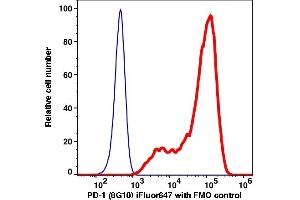 The clone 8G10, a mouse monoclonal antibody selectively binds with a 50-55 kD cell surface protein commonly known as Programmed cell death 1 (PD-1) or CD279, a member of the immunoglobulin superfamily. PD-1 expression is mostly observed in activated T cells and B cells, and also in dendritic cells. PD-1 signals via binding its two ligands, PD-L1 and PD-L2. Upon ligand binding, PD-1 signaling inhibits T-cell activation, leading to reduced proliferation, cytokine production, and T cell death. Blocking of PD-1 by its antibody restores T cells immunity against tumor and infectious agents. PD-1-blockade based immunotherapy is, therefore, highly clinically useful against various types of cancers and infectious diseases.
