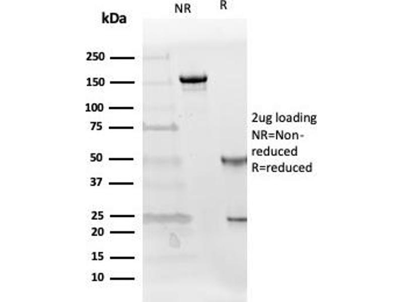 Known Application: ELISA (Use in combination with clone FST/4282 for two-site ELISA), ,Immunohistochemistry (Formalin-fixed) (1-2 μg/mL for 30 minutes at RT),(Staining of formalin-fixed tissues requires heating tissue sections in 10 mM Tris with 1 mM EDTA, pH 9.0, for 45 min at 95 °C followed by cooling at RT for 20 minutes),Optimal dilution for a specific application should be determined.