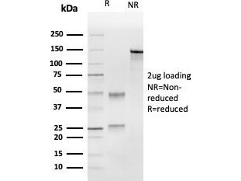 Known Application: ELISA (For coating, order antibody without BSA),Immunohistochemistry (Formalin-fixed) (1-2 μg/mL for 30 minutes at RT),(Staining of formalin-fixed tissues requires heating tissue sections in 10 mM Tris with 1 mM EDTA, pH 9.0, for 45 min at 95°C followed by cooling at RT for 20 minutes),Optimal dilution for a specific application should be determined.
