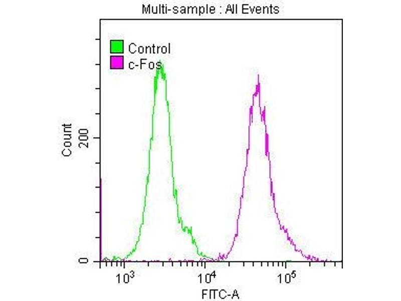 Background: Nuclear phosphoprotein which forms a tight but non-covalently linked complex with the JUN/AP-1 transcription factor. In the heterodimer, FOS and JUN/AP-1 basic regions each seems to interact with symmetrical DNA half sites. On TGF-beta activation, forms a multimeric SMAD3/SMAD4/JUN/FOS complex at the AP1/SMAD-binding site to regulate TGF-beta-mediated signaling. Has a critical function in regulating the development of cells destined to form and maintain the skeleton. It is thought to have an important role in signal transduction, cell proliferation and differentiation. In growing cells, activates phospholipid synthesis, possibly by activating CDS1 and PI4K2A. This activity requires Tyr-dephosphorylation and association with the endoplasmic reticulum.