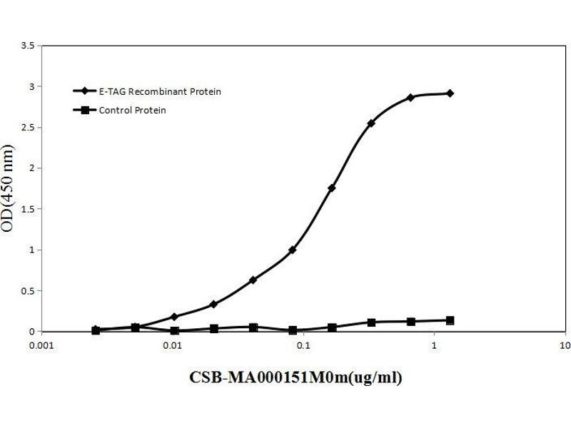 Der Maus Monoklonal anti-E Tag Antikörper (Klon 11H12B3) (ABIN7131634) detektiert spezifisch E Tag in WB, ELISA und IP.