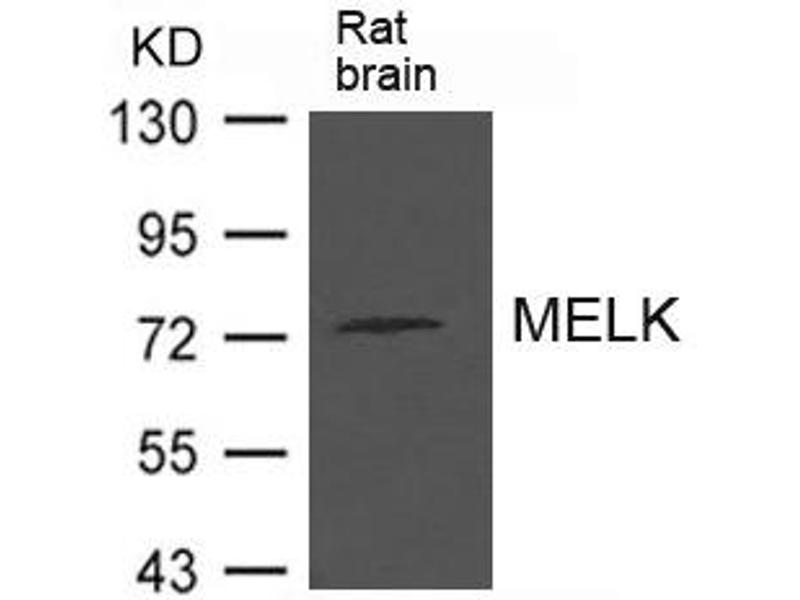 Vulsteke V., Beullens M., Boudrez A., Keppens S. Biol. Chem. 279:8642-8647(2004)Aliases: AI327312 antibody, hMELK antibody, HPK 38 antibody, hPK38 antibody, KIAA0175 antibody, Likely ortholog of maternal embryonic leucine zipper kinase antibody, Maternal embryonic leucine zipper kinase antibody, MELK antibody, MELK_HUMAN antibody, mKIAA0175 antibody, MPK38 antibody, OTTHUMP00000021377 antibody, OTTHUMP00000046113 antibody, pEg3 kinase antibody, Protein kinase Eg3 antibody, Protein kinase PK38 antibody, RP23 382O11.1 antibody, Tyrosine protein kinase MELK antibody