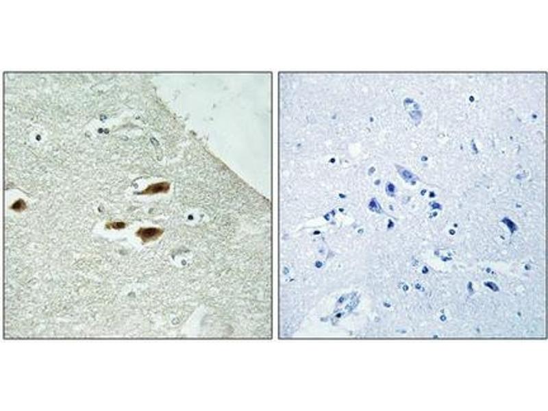 Antibodies were produced by immunizing rabbits with synthetic phosphopeptide and KLH conjugates. Antibodies were purified by affinity-chromatography using epitope-specific phosphopeptide. Non-phospho specific antibodies were removed by chromatogramphy usi