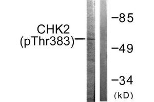Nabil H. Chehab, Genes & Dev., Feb 2000, 14: 278.Aliases: CDS 1 antibody, Cds1 antibody, Cds1 homolog antibody, Checkpoint kinase 2 antibody, Checkpoint like protein CHK2 antibody, CHEK 2 antibody, Chek2 antibody, Chk 2 antibody, CHK2 checkpoint homolog (S. pombe) antibody, CHK2 checkpoint homolog antibody, CHK2_HUMAN antibody, hCds1 antibody, HuCds 1 antibody, LFS 2 antibody, LFS2 antibody, PP1425 antibody, RAD 53 antibody, RAD53 antibody, Rad53 homolog antibody, Serine/threonine protein kinase Chk2 antibody, Serine/threonine-protein kinase Chk2 antibody