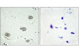 Antibodies were produced by immunizing rabbits with synthetic phosphopeptide and KLH conjugates. Antibodies were purified by affinity-chromatography using epitope-specific phosphopeptide. Non-phospho specific antibodies were removed by chromatogramphy usi