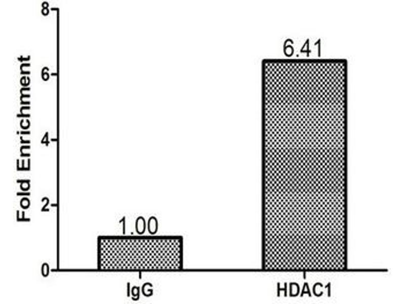 Background: Responsible for the deacetylation of lysine residues on the N-terminal part of the core histones (H2A, H2B, H3 and H4). Histone deacetylation gives a tag for epigenetic repression and plays an important role in transcriptional regulation, cell cycle progression and developmental events. Histone deacetylases act via the formation of large multiprotein complexes. Deacetylates SP proteins, SP1 and SP3, and regulates their function. Component of the BRG1-RB1-HDAC1 complex, which negatively regulates the CREST-mediated transcription in resting neurons. Upon calcium stimulation, HDAC1 is released from the complex and CREBBP is recruited, which facilitates transcriptional activation. Deacetylates TSHZ3 and regulates its transcriptional repressor activity. Deacetylates \\\'Lys-310\\\' in RELA and thereby inhibits the transcriptional activity of NF-kappa-B. Deacetylates NR1D2 and abrogates the effect of KAT5-mediated relieving of NR1D2 transcription repression activity. Component of a RCOR/GFI/KDM1A/HDAC complex that suppresses, via histone deacetylase (HDAC) recruitment, a number of genes implicated in multilineage blood cell development. Involved in CIART-mediated transcriptional repression of the circadian transcriptional activator: CLOCK-ARNTL/BMAL1 heterodimer. Required for the transcriptional repression of circadian target genes, such as PER1, mediated by the large PER complex or CRY1 through histone deacetylation.
