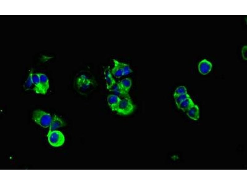 Background: The alpha subunit has cell adhesive properties. Can act both as an adhesion and an anti-adhesion protein. May provide a protective layer on epithelial cells against bacterial and enzyme attack. Ref.26 Ref.37 Ref.40 Ref.45 Ref.46 Ref.49 Ref.52 Ref.53 Ref.56.The beta subunit contains a C-terminal domain which is involved in cell signaling, through phosphorylations and protein-protein interactions. Modulates signaling in ERK, SRC and NF-kappa-B pathways. In activated T-cells, influences directly or indirectly the Ras/MAPK pathway. Promotes tumor progression. Regulates TP53-mediated transcription and determines cell fate in the genotoxic stress response. Binds, together with KLF4, the PE21 promoter element of TP53 and represses TP53 activity.